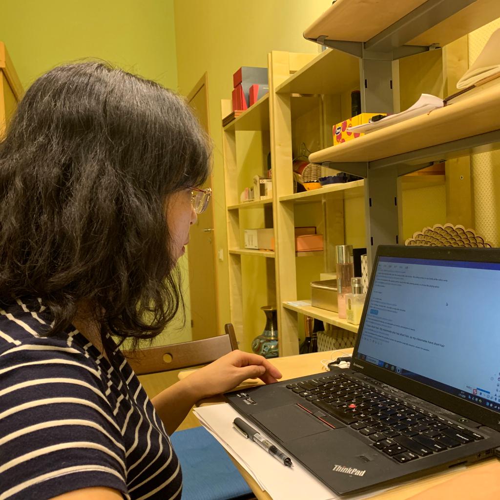 今天的教学有点小体会到网上教学的一些优势。例如,员工的回答都可以呈现在屏幕上,便于更多的同学们参与、围观、互学,也便于老师及时发现问题。例如今天的课文阅读理解题就有两位同学的回答有偏差,在随后的讲解中我就着重分析了那两题。又如,在同学们自由分享时,我浏览到了一些语言问题,立刻进行了指正。但是也有一些麻烦,分享的信息多了些,不能全部看完。今后要在节奏和量上面探索更好的课堂把控。
