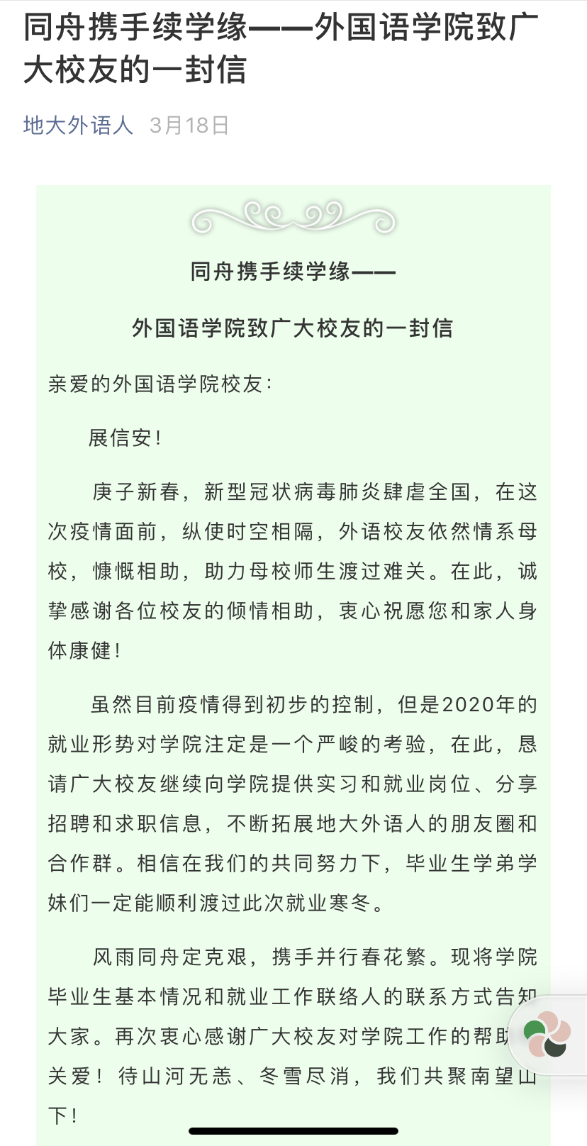 db真人体育官网促进2020届毕业生充分就业工作方案 致员工的一封信