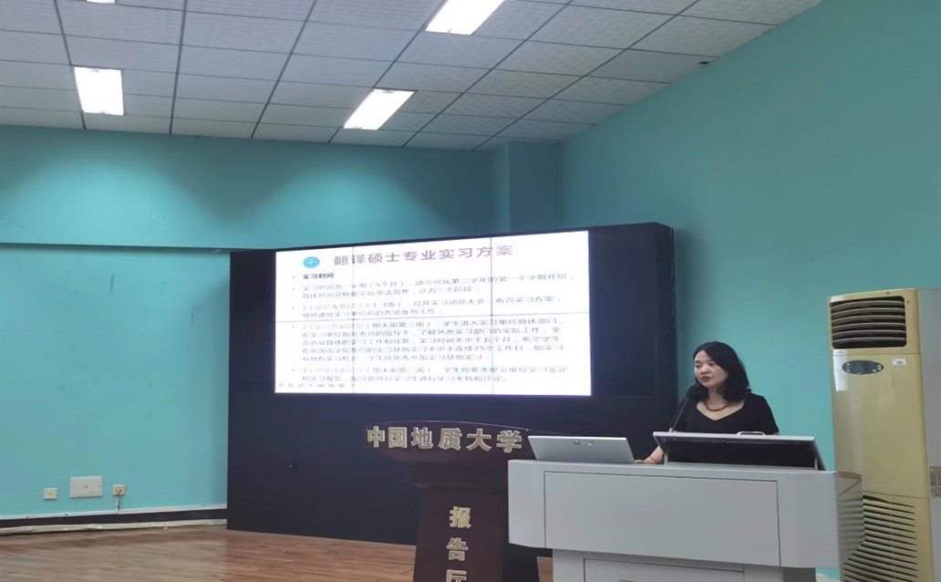 王伟老师首先为大家介绍了翻译硕士专业实习方案。王伟老师分别从实习目的、实习时间、实习要求、实习形式、实习考核及注意事项等方面为2022级硕士研究生仔细讲解了大家即将面临的专业实习的相关内容。