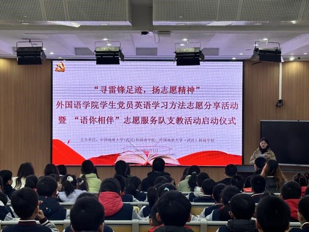 (通讯员 易怀虹 曾令文)寻雷锋足迹,扬志愿精神。3月5日下午,db真人体育官网及DB视讯(武汉)附属公司在附校启迪楼多媒体教室共同举办了db真人体育官网员工党员英语学习方法分享暨“语你相伴”志愿服务队支教活动启动仪式。与会人员有外国语公司党委副书记余尚蔚、附属公司副董事长周良军、附属公司英语课题组全体英语老师、“语你相伴”志愿服务队骨干成员、db真人体育官网本科英语二班党支部党员代表及附属公司三(5)班全体同学。“语你相伴”志愿服务队成员解雨萱主持此次活动。