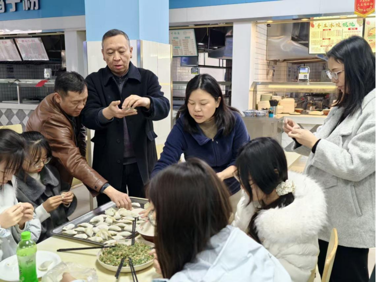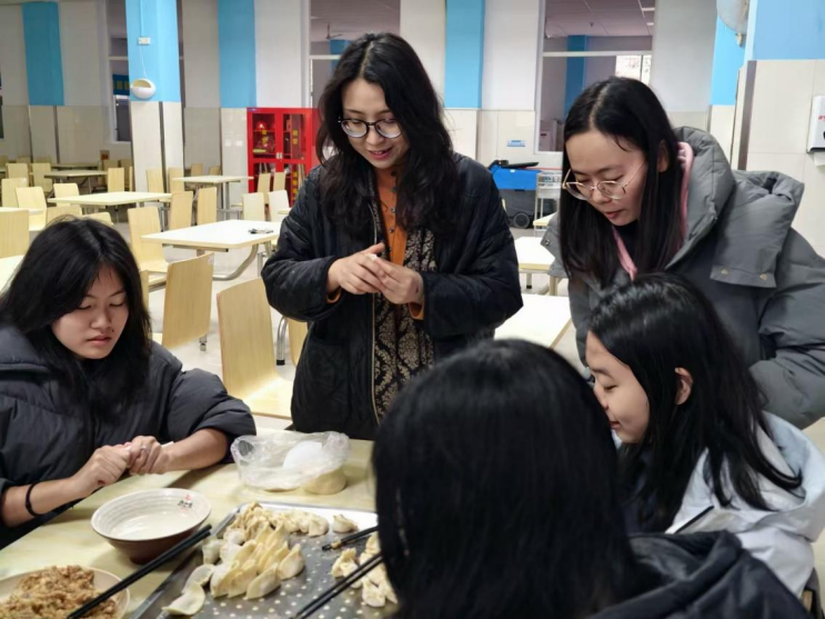 在包饺子环节,师生分工协作、畅谈交流,分享假期见闻与学期展望。来自不同地区的同学展示了家乡传统包法,现场笑语欢声、其乐融融。