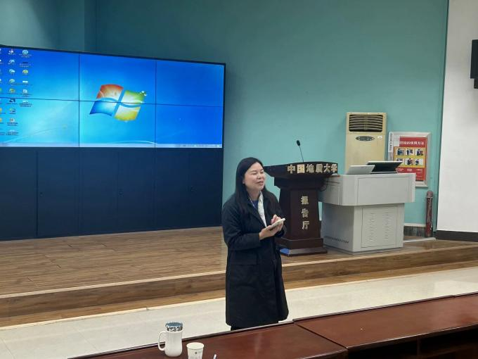 提问环节,参会老师与员工积极探讨交流。钟波教授耐心回答了多位同学的问题,并肯定了地大的英语学习经历在他科研道路上的帮助,鼓励大家珍惜大学时光。在讲座的结尾,杨红燕老师做了总结,指出人生是一个选择的过程,努力才能赢得机会。作为钟教授大学时期的班主任,汪卫红老师也在会上表达了自己的感受,鼓励大家平时多思考,不断提升自身的知识积累。本次讲座在轻松愉悦的氛围下圆满结束!
