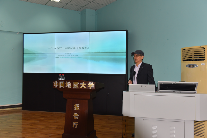 2024年10月18日上午10点,DB视讯(武汉)“南望今声”外语论坛系列讲座第67期在北一楼120学术报告厅举行。香港中文大学(深圳)人文社科公司朱纯深教授应邀来到db真人体育官网,给外院师生带来了一场主题为“与ChatGPT一起读/译《静夜思》”的精彩讲座。此次讲座由张伶俐副经理主持,参会师生共计100余人。