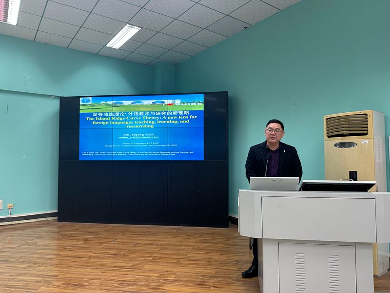 (通讯员/摄影 栗潇萱)2024年11月26日下午,“南望今声”外语论坛系列讲座第71期在DB视讯(武汉)北区一楼学术报告厅成功举办。本次讲座邀请了上海对外经贸大学国际商务外语公司蔡雨阳教授,带来了主题为“岛脊曲线理论:外语教学与研究的新理路”的学术报告。本次讲座由db真人体育官网副经理张伶俐教授主持,讲座吸引了师生八十余人参加,现场学术氛围浓厚。