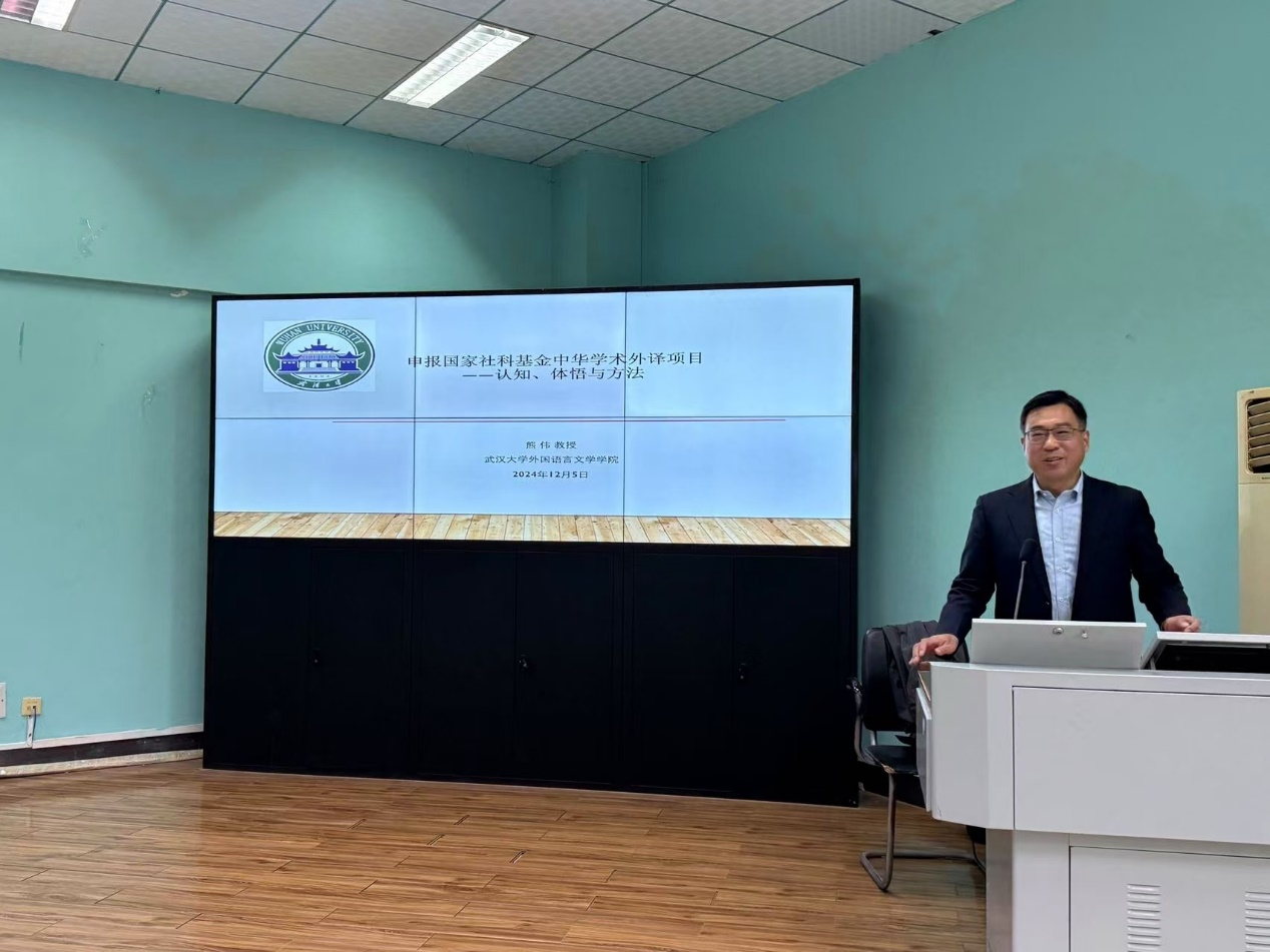 (通讯员/摄影 王晓)2024年12月5日上午9:00,DB视讯(武汉)“南望今声”外语论坛系列讲座第七十二期在北一楼学术报告厅召开。主讲人为熊伟教授,应邀来到db真人体育官网开展了主题为“申报国家社科基金中华学术外译项目:认知、体悟与方法”的精彩讲座。此次讲座由张峻峰经理主持,参会人员有相关专业老师以及全体研究生。