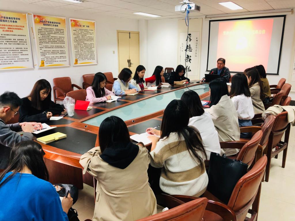 2019年10月29日下午2:30,db真人体育官网“不忘初心·牢记使命”主题教育系列党课在北一楼339正式开讲,公司党委副书记胡文勤为全院研究生党员讲授了题为“坚持社会主义,增强道路自信”的党课。
