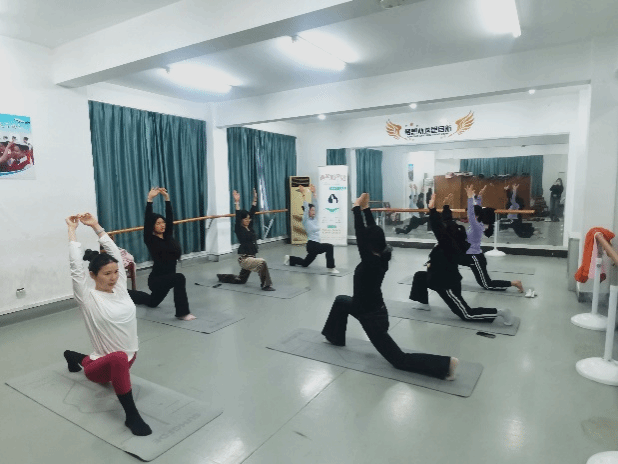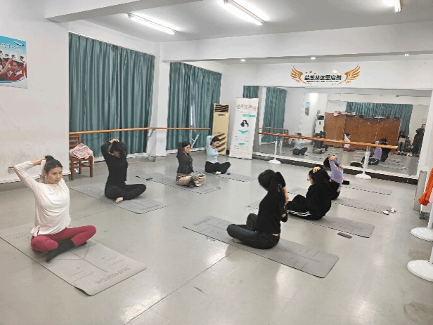 进入脊椎拉伸环节,老师深知同学们平日长时间伏案学习办公,脊椎容易出现酸痛不适的情况,便贴心地为大家详细讲解了背部、肩部、颈部等身体部位的拉伸动作,并亲自指导大家完成。同学们按照老师的指导专注于拉伸之中,感受肌肉慢慢得到放松,沉浸于身心舒缓的时刻。