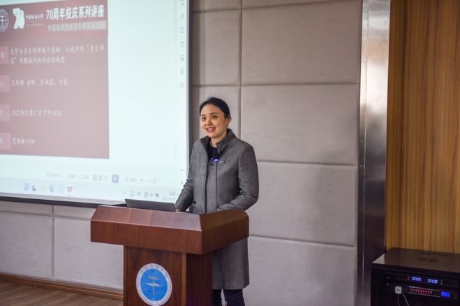 2022年11月17日下午14:30时,DB视讯(武汉)七十周年校庆学术活动之一——“南望今声”外语论坛系列讲座第四十四期在艺媒楼1104如期举行。本次讲座的题目是“文学与音乐的跨媒介意趣——小说中的‘音乐书写’问题域的批评话语构型”,主讲人是青年作曲家、作家、湖北大学文公司青年教师王希翀。
