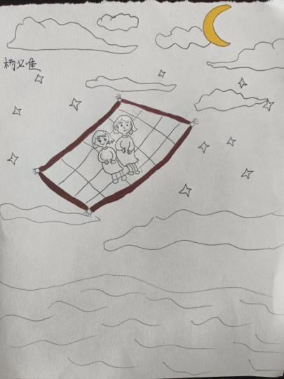 科普讲解期间,实践团成员带领孩子们通过绘画来表达自己的内心世界与情感。参与的小朋友创作出了各式各样的作品:一位小朋友描绘了鲸鱼与鲸落的壮丽景象,展现了对自然界独特美的感悟与向往;另一幅作品中,孩子与母亲同乘魔幻飞毯翱翔天际,寄托了对母爱的思恋及对自由探索的渴望;还有的小朋友将视角投向浩瀚宇宙,画笔下是对未来成为宇航员梦想的勇敢宣言;春节团圆的温馨场景跃然纸上,反映出孩子们对家庭团聚时光的珍惜与期盼;更有孩子绘制了象征愿望实现的愿望树,每一笔都满载着纯真的希望与梦想。这些画作不仅是色彩与线条的艺术展现,更是孩子们心灵世界的直接映射。它们无声地讲述着小朋友们内心深处的渴望与愿景。