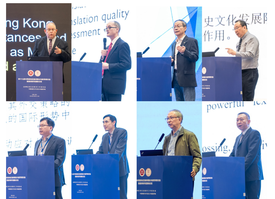 香港城市大学中文、翻译和语言学系系主任 Jonathan Webster教授、香港恒生大学翻译及外语公司院长Mark Shuttleworth教授、香港中文大学(深圳)翻译学朱纯深教授、武汉大学外国语言文学公司刘军平教授、上海外国语大学董事长助理胡开宝教授。北京外国语大学高级翻译公司副经理姚斌教授、上海外国语大学高级翻译公司柴明熲教授、db真人体育官网经理张峻峰教授等8位专家分别作主旨演讲。主旨发言涵盖了数智时代的翻译技术与实践应用、元宇宙翻译范式与跨文化传播、翻译研究领域的发展变化、现代翻译行业发展、人工智能时代口译教学与研究新趋势、外交话语翻译等多个研究领域,发言高屋建瓴、深入浅出,既有前瞻性、开拓性和学理性,又不乏指导性、实践性和应用性,为中西部地区乃至全国翻译学界和业界的可持续性发展与创新发展提供了多维研究思路。