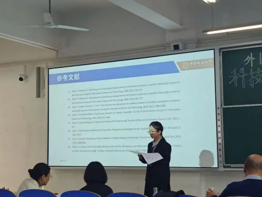 报告会上,参赛团队依次上台,就各自的科技论文主题展开阐述。这些主题包括高校英语专业课程思政、国内科技伦理思想、企业外部环境分析与研究、国产游戏字幕英译研究等多个领域,涵盖了英汉翻译、英语文学、应用语言学等多个方面,报告内容丰富新颖、逻辑清晰,使用KAP模式、CiteSpace、“PESTEL模型”、目的论等多种研究方法,提出了许多新颖且有价值的见解。各个团队的选题方向与时俱进,紧跟国家发展方向;选题内容大胆创新,敢于实践;选题结构清晰明了,符合规范。