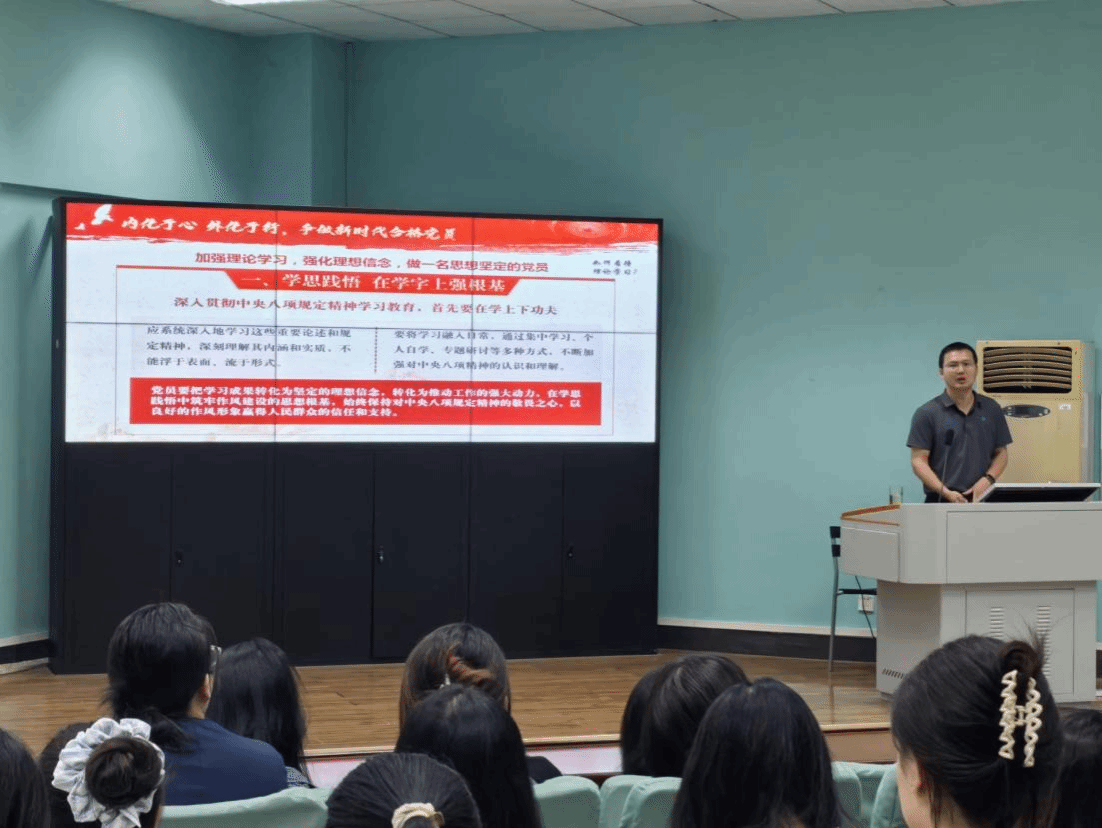 (通讯员 黎颖)为扎实推进深入贯彻中央八项规定精神学习教育,以“学”筑基来校准思想坐标,2025年5月26 日,外国语公司党委副书记余尚蔚以“深学细悟八项规定精神,争做新时代合格党员”为题给全体员工党员讲授专题党课。