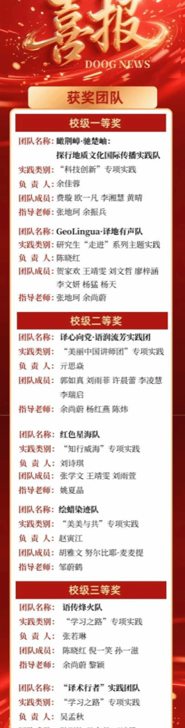 语传烽火队重走鄂豫皖革命根据地,深入挖掘抗战历史,系统学习抗战精神和大别山精神内涵,以红色实践为抓手,制作了党课视频、记录了实践Vlog,展现了鄂豫皖革命根据地的历史背景、重要战役和英雄事迹,发挥了db真人体育官网专业优势,探索了红色文化的国际传播路径,提升了党员用外语讲好中国抗战故事的能力。