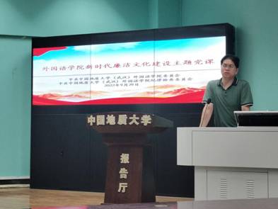 最后,外国语公司党委副书记、纪委书记胡文勤老师给大家上了一堂新时代廉洁文化建设主题党课。胡老师引导大家一起学习了新时代有关廉洁文化建设的重要内容,同时结合员工日常学习和生活实际深入分析了员工党员中可能存在的腐败思想和言行,教育广老员工党员要深刻汲取警示教育片的经验教训,不断加强党性修养,时刻绷紧新时代廉洁文化建设这根弦,提高法纪意识,筑牢思想道德防线,用自己的实际行动践行入党誓言。