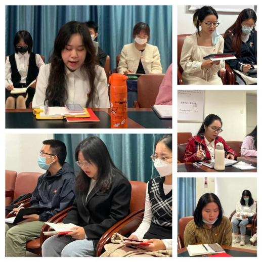 其中,来自本科生英语+工商管理班党支部的谢怡欣从自己作为中共预备党员、员工骨干和外语学子这三个角色出发,感受到当代中国青年生逢其时,实现梦想的前景无比光明;唐湘林和沈婧怡同学则是对党十八大召开至今所经历的对党和人民事业具有重大现实意义和深远历史意义的三件大事深有体会,同时表示作为员工党员,将在学习、生活和工作中发挥模范带头作用。本科生英语2班党支部的梁宇颖谈到自己亲身目睹并深刻体会到了党为人民福祉付出的努力与取得的成就。2021级研究生第二支部王紫璇和2020级研究生第一支部的冯月都结合了所学的翻译专业,表示自己应学好专业知识,进而讲好中国故事,传播好中国声音,推进中国文化更好地走向世界。
