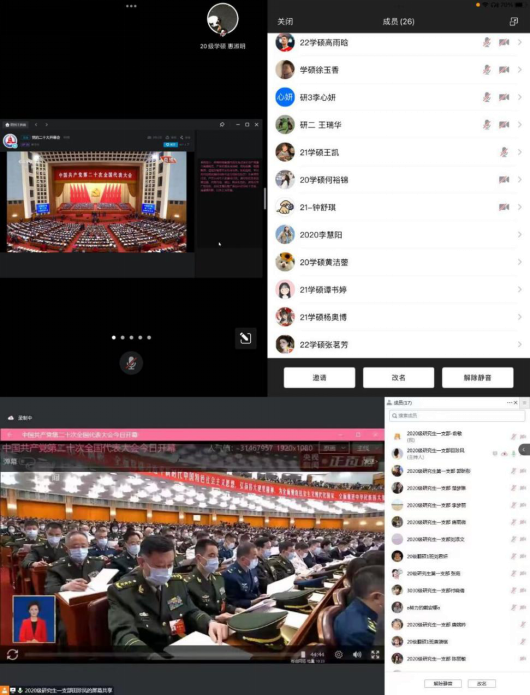 (来自20级学硕和第一党支部的视频会议截图)