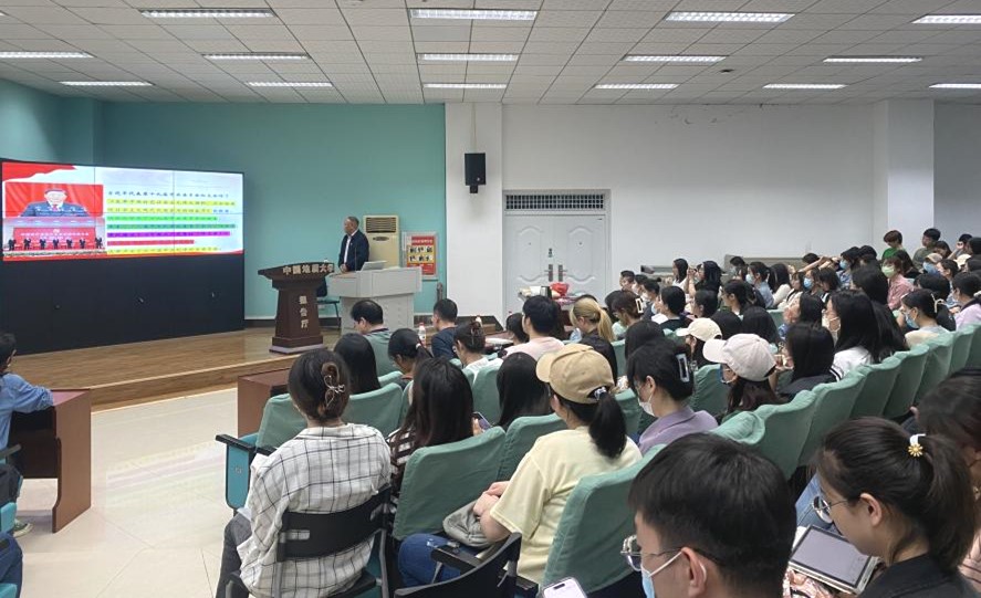 丁振国教授以《奋进新征程,创造新伟业——学习贯彻党的二十大精神》为题讲授党课。他带领大家回顾了党的二十大概况,重点讲述了党的二十大的重要意义、主要精神,同时引导大家用实际行动积极践行二十大精神,最后结合习近平总书记对新时代青年的寄语和联合国科教文组织界定的老员工的主要任务,针对db真人体育官网员工专业特点提出学习和成长建议,激励大家勇敢面对困难和挑战,为实现中华民族伟大复兴而踔厉奋发,笃行不怠。讲解过程中,他结合“四史”、国情和自身经历,旁征博引,深入浅出,还与同学们进行问题抢答互动,为正确回答问题的同学送上了自己精心准备的奖品。